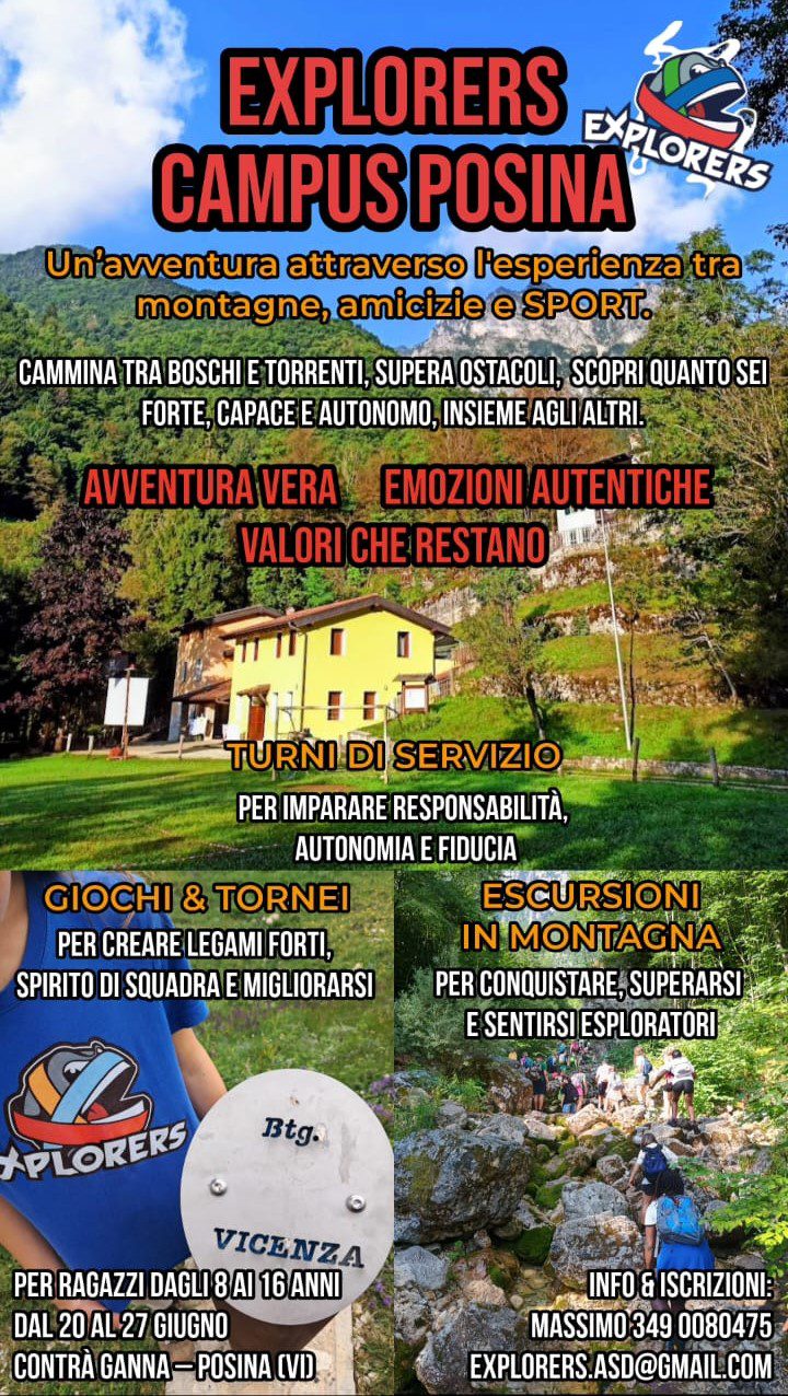 Il programma EXPLORERS prevede escursioni in montagna, bagni nell’acqua fresca del torrente, attività outdoor, giochi e tornei di squadra. I ragazzi partecipano anche alla vita del campo, con piccoli turni di servizio che insegnano collaborazione e responsabilità.